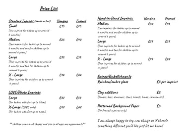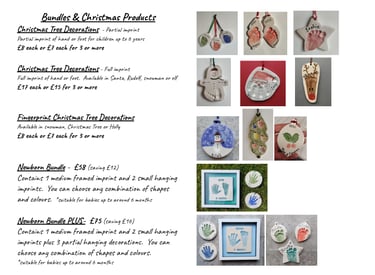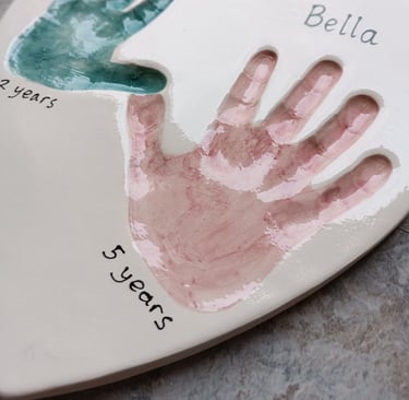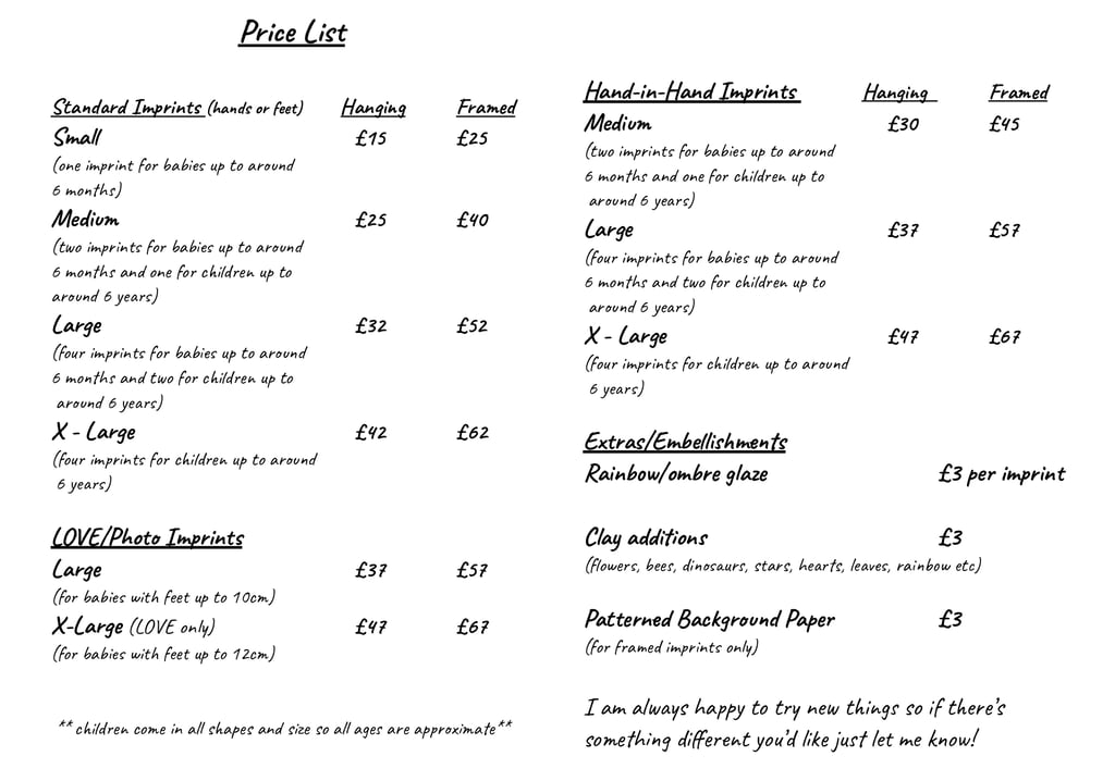Simple hand or foot imprints of babies a few days old to a adults a 100 years old!